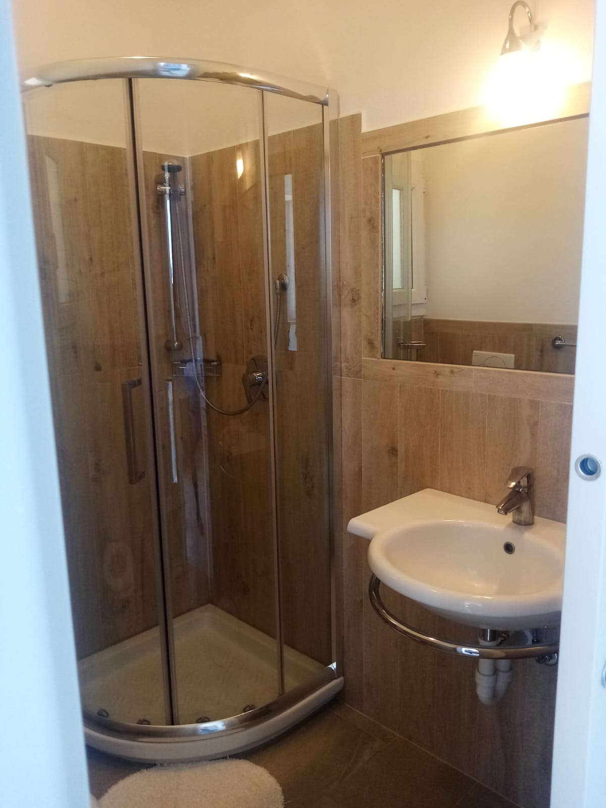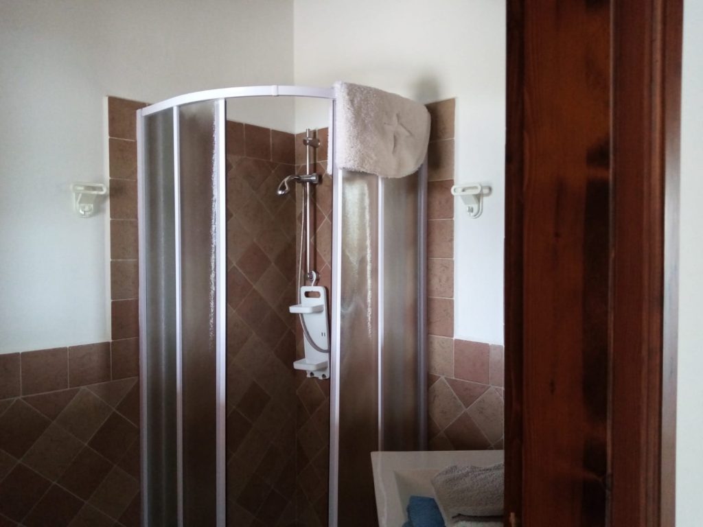 Proseguendo troveremo il bagno con box doccia, e la camera matrimoniale minimalista ma con tutto il necessario, in linea con l’ambiente rurale circostante