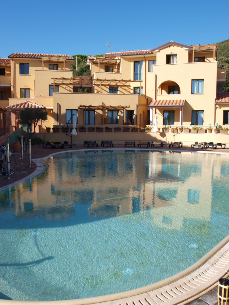 All’interno di un complesso residenziale di recente costruzione (anno 2011), inizialmente nato come residence turistico e adesso condominio panoramico in posizione dominante sul paese di Cavo, comune di Rio. Cittadina che vanta il porto turistico e commerciale più vicino a Piombino
