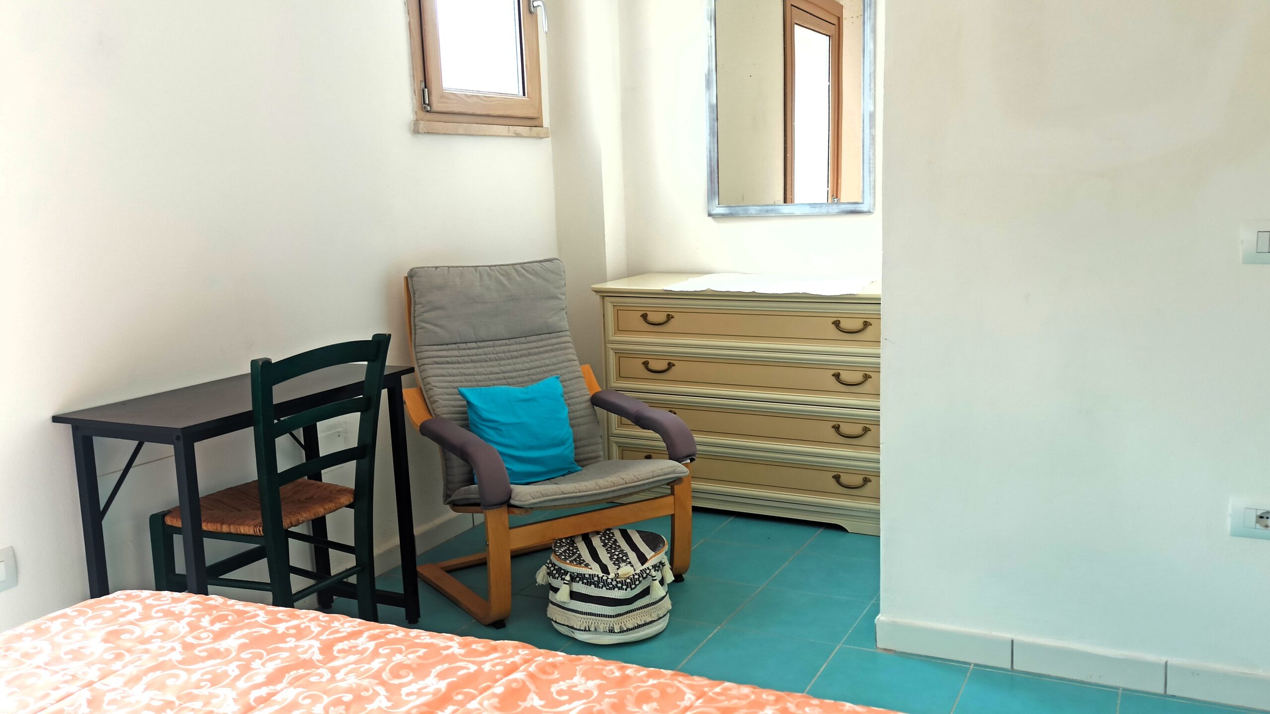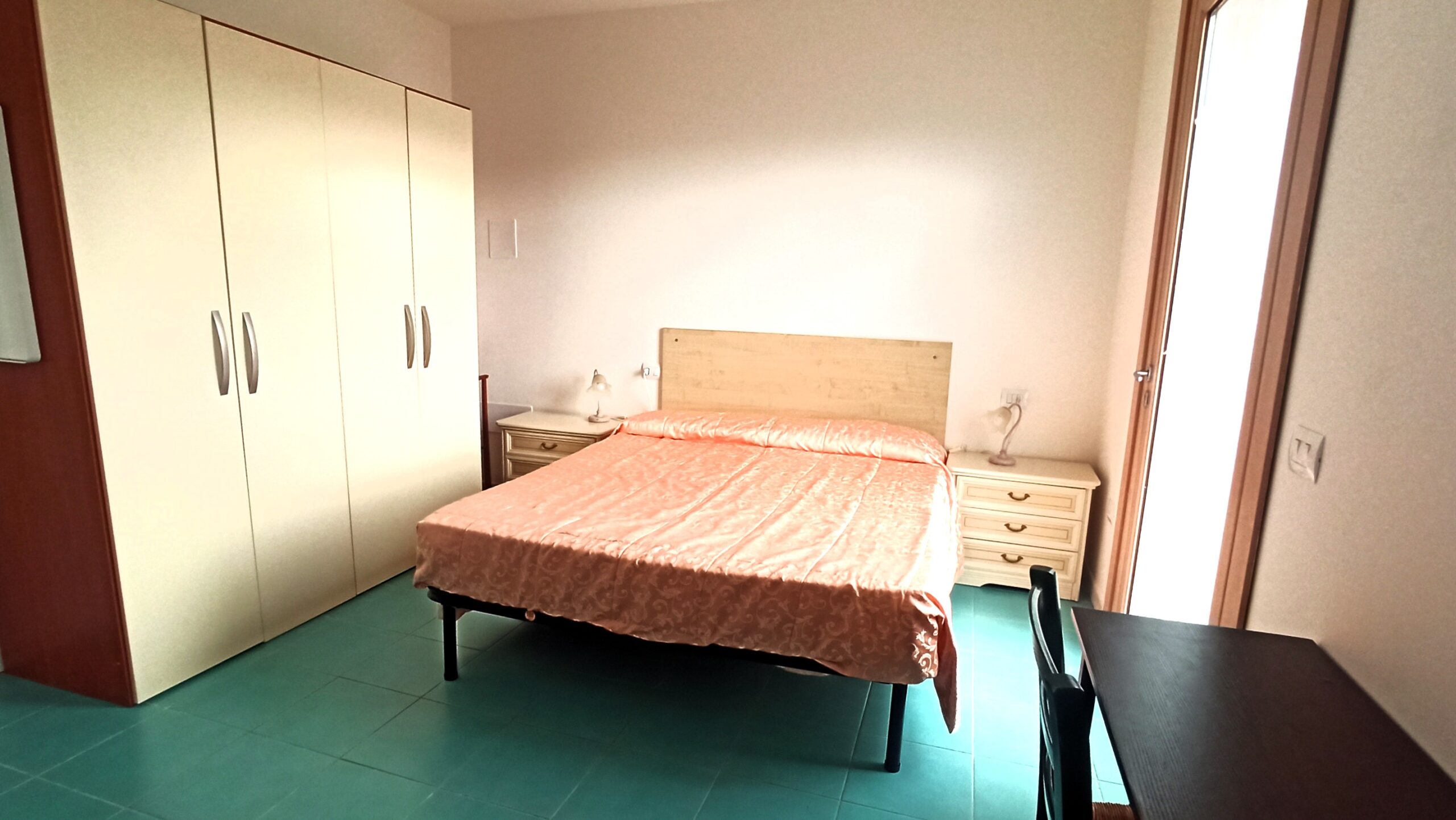 Camera da letto matrimoniale con accesso ad un piccolo spazio esterno sul retro che affaccia sulla valle del parco nazionale dell’arcipelago toscano.