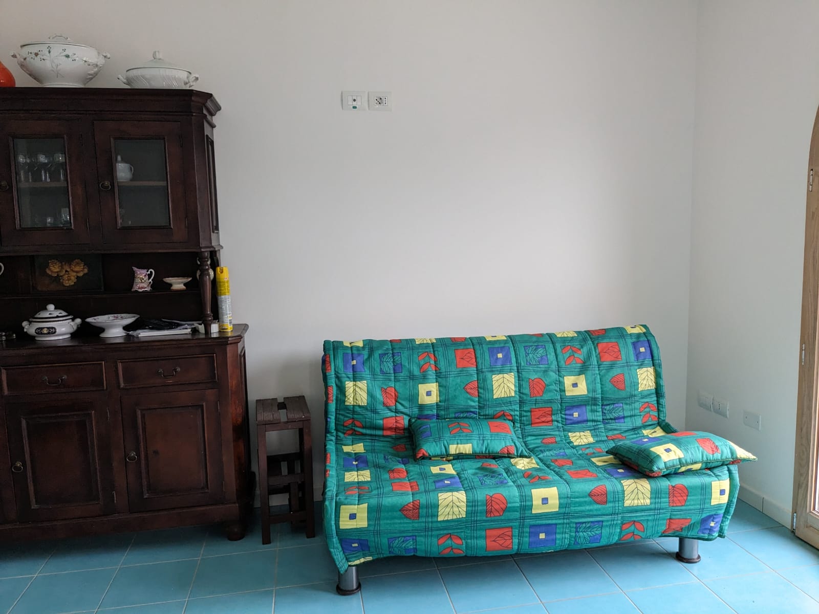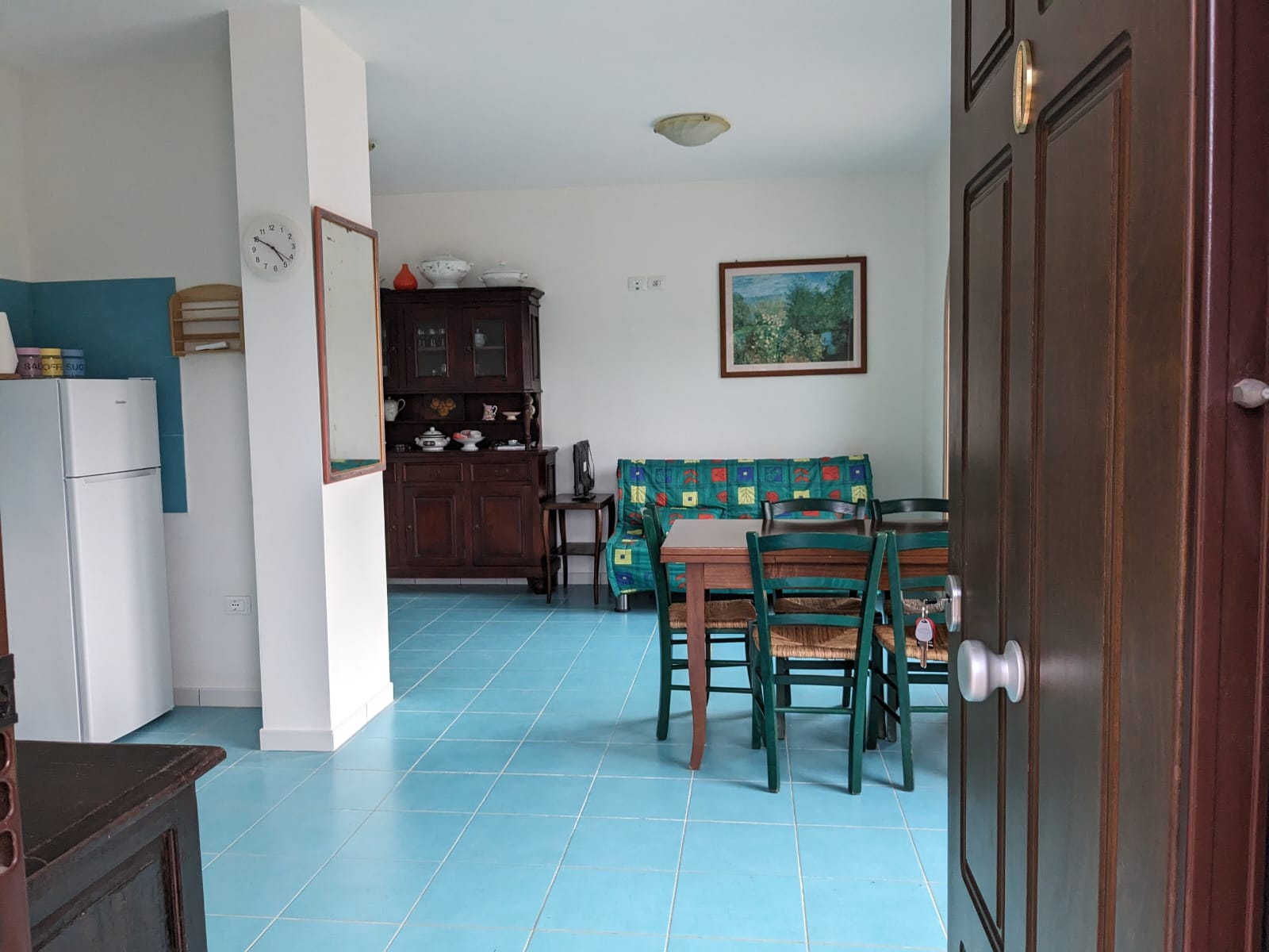 Un altro spazio esterno di fronte l’ingresso, di buone dimensioni, piastrellato, adatto ad essere utilizzato per pranzare all’aperto.