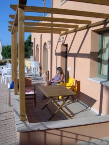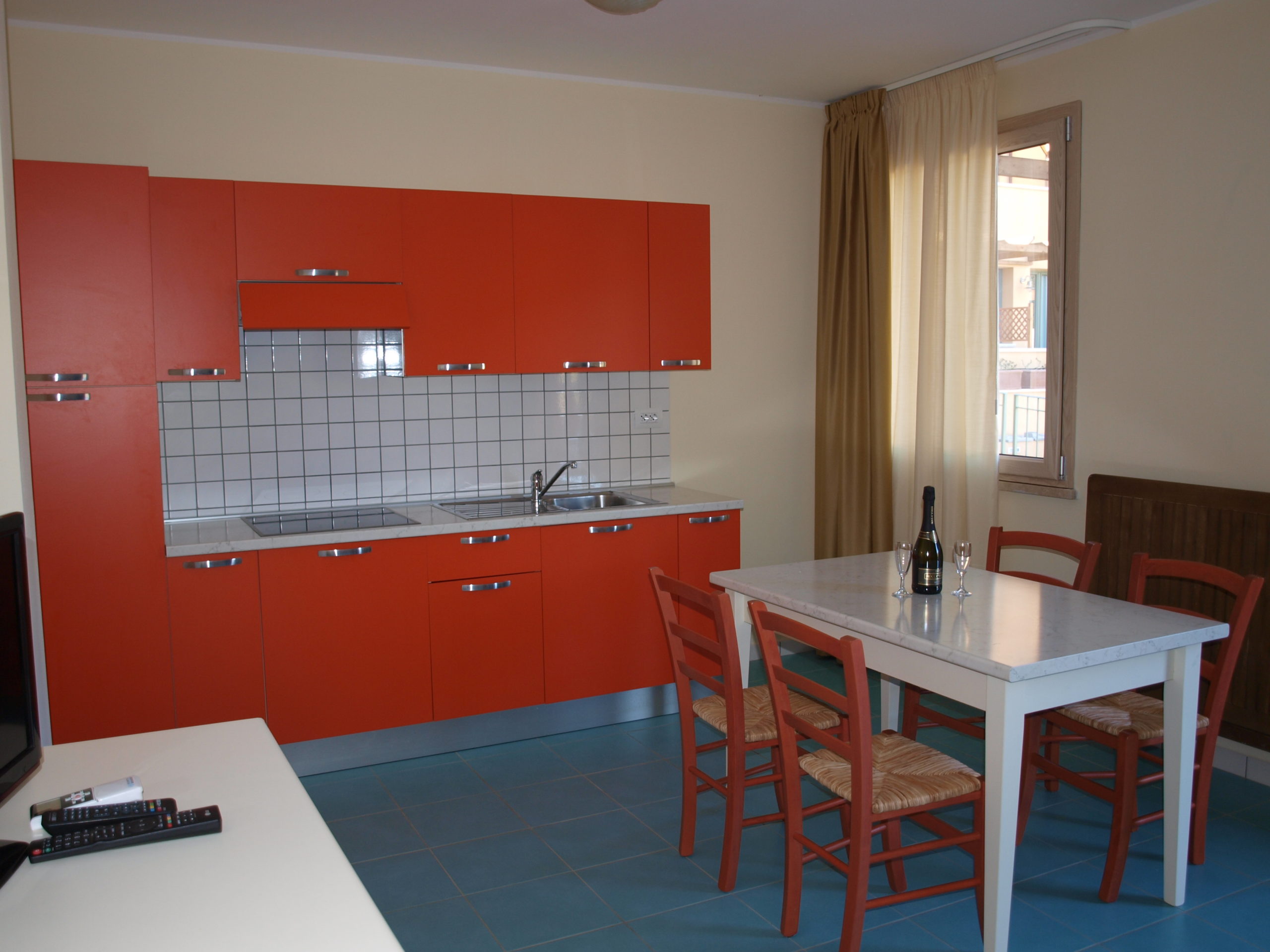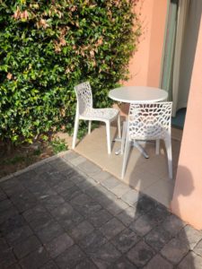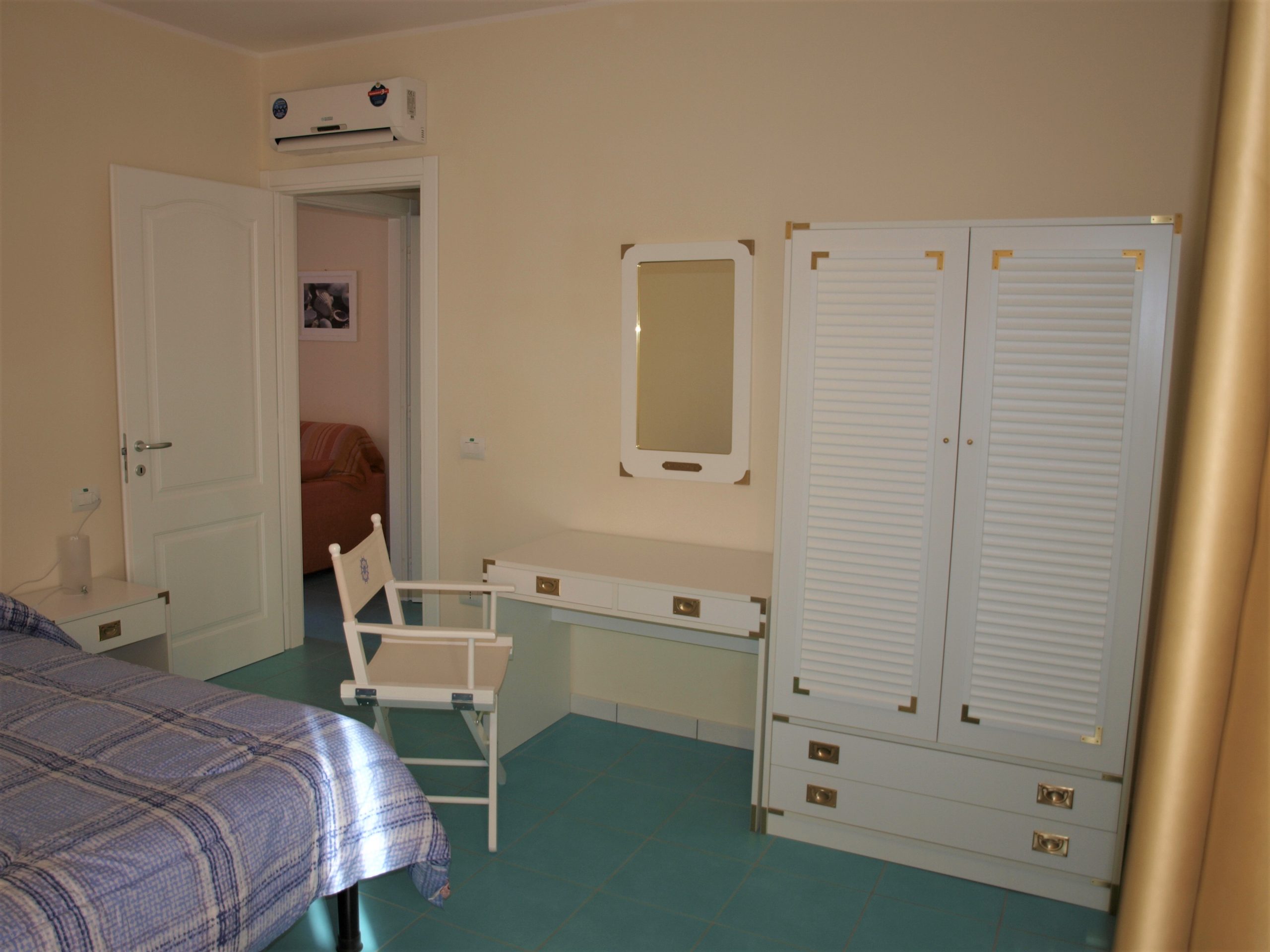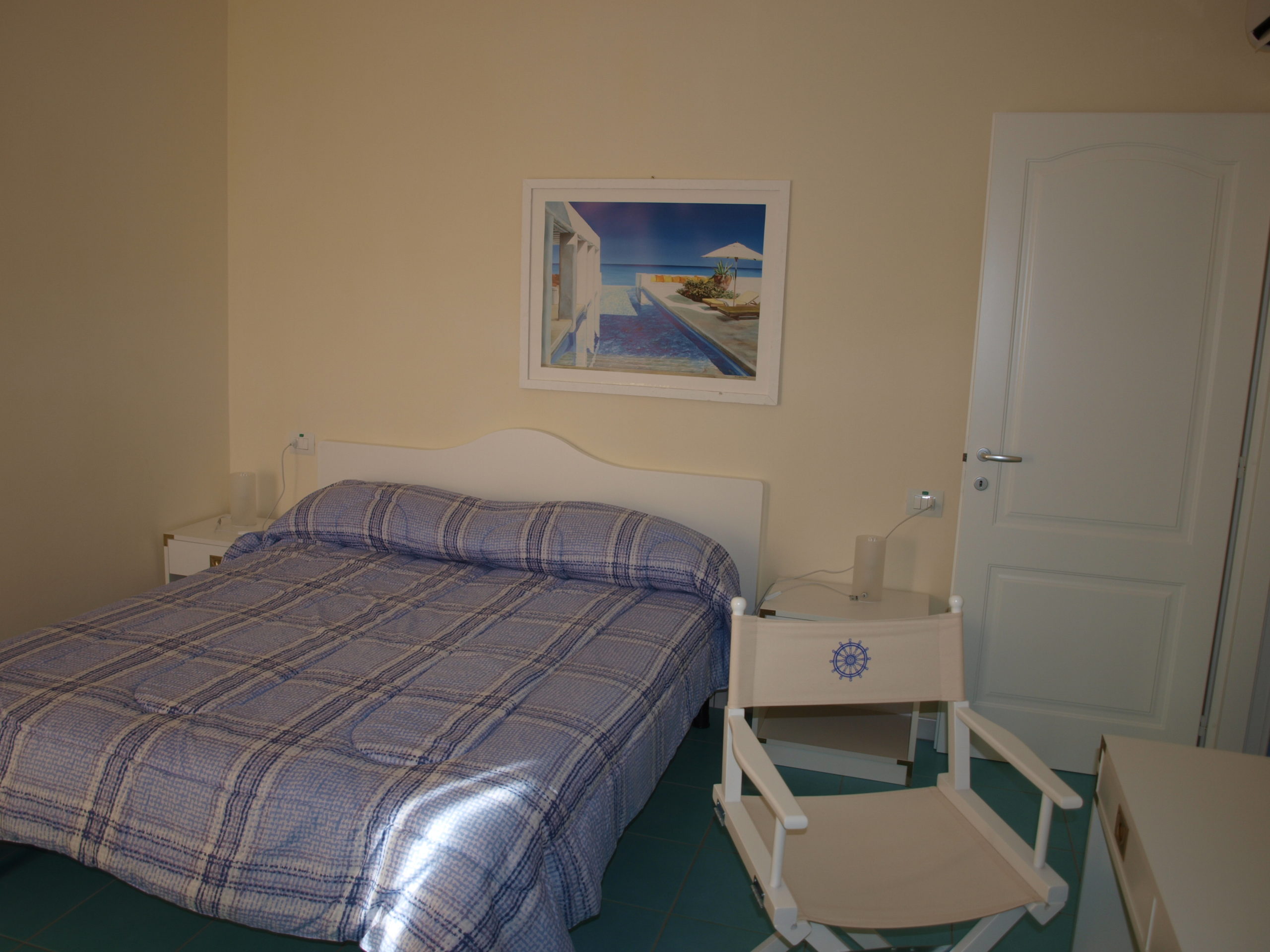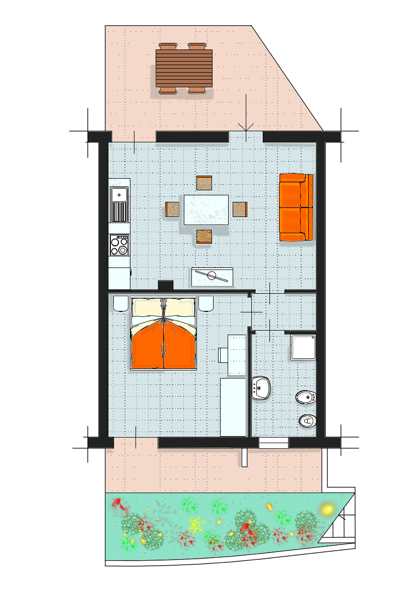 Capienza massima 4 persone. Composto da: spazio esterno fronte piscina attrezzato con tavolo e sedie, camera da letto matrimoniale con accesso a corte sul retro, attrezzata con tavolino e sedie; zona giorno con angolo cottura e divano letto 2 posti. Dotazioni: piastre elettriche ad induzione con comando touch, aria condizionata in entrambe le stanze, TV con decoder satellitare, lavatrice, cassaforte, boiler