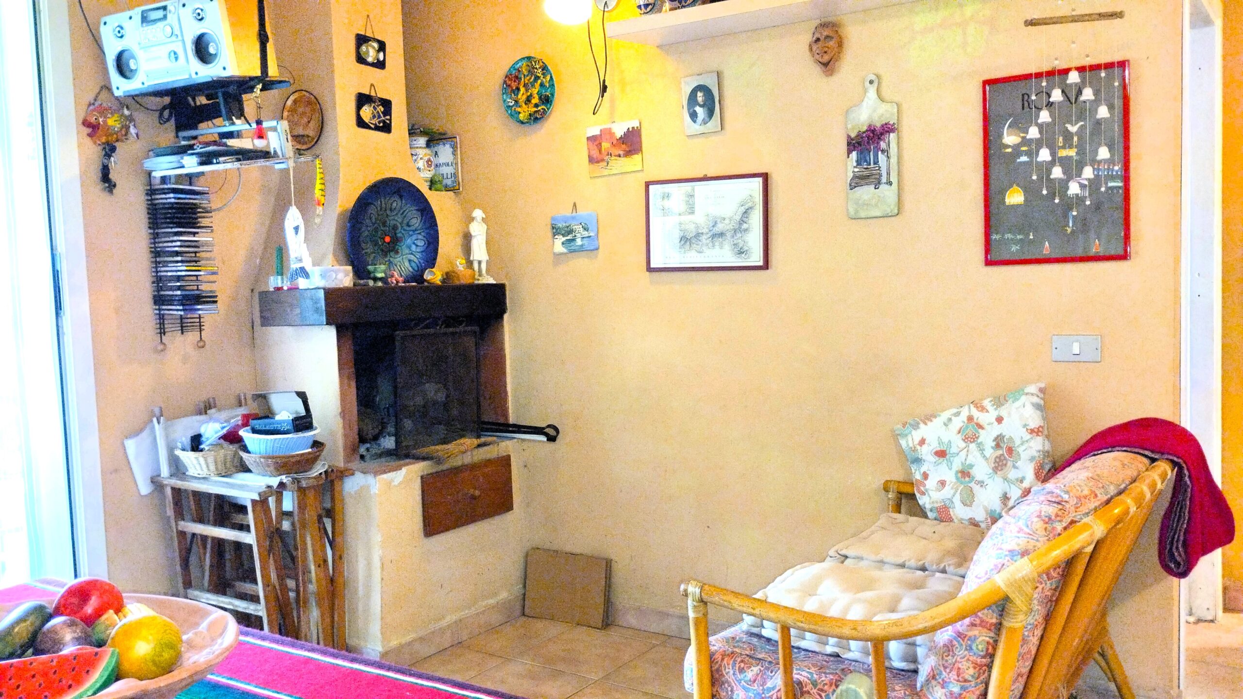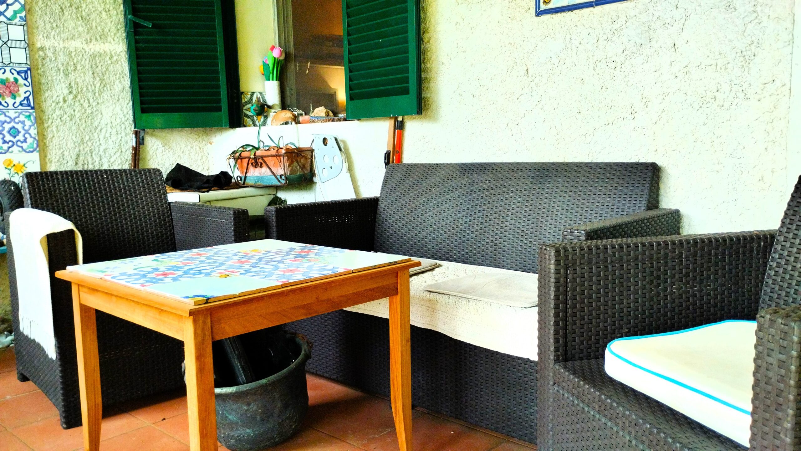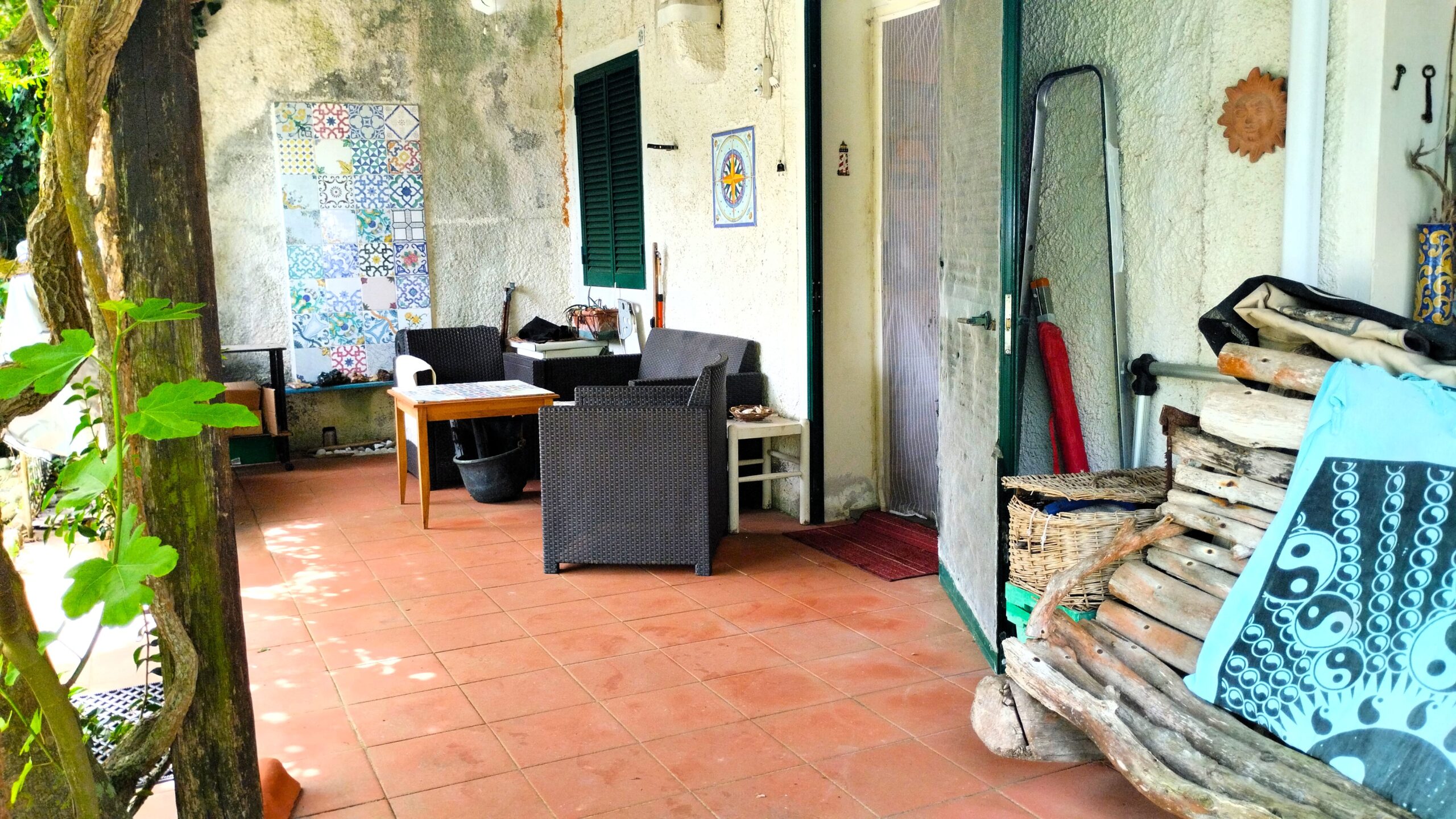 L’appartamento, originariamente facente parte di una villa più grande, ha ingresso indipendente nel grande giardino dotato di barbecue, un loggiato e una veranda attrezzati alla convivialità. Internamente troviamo la zona giorno con tavolo da pranzo interno e divani, bagno con box doccia e lavatrice, cucinotto a gas, camera matrimoniale e cameretta con divano letto singolo più letto estraibile.