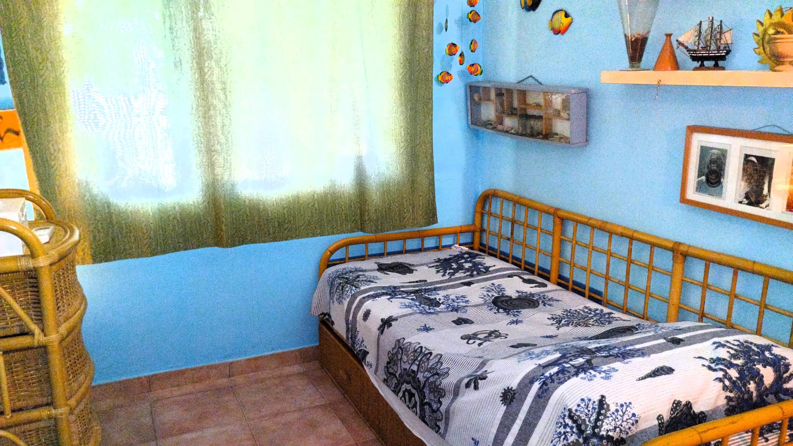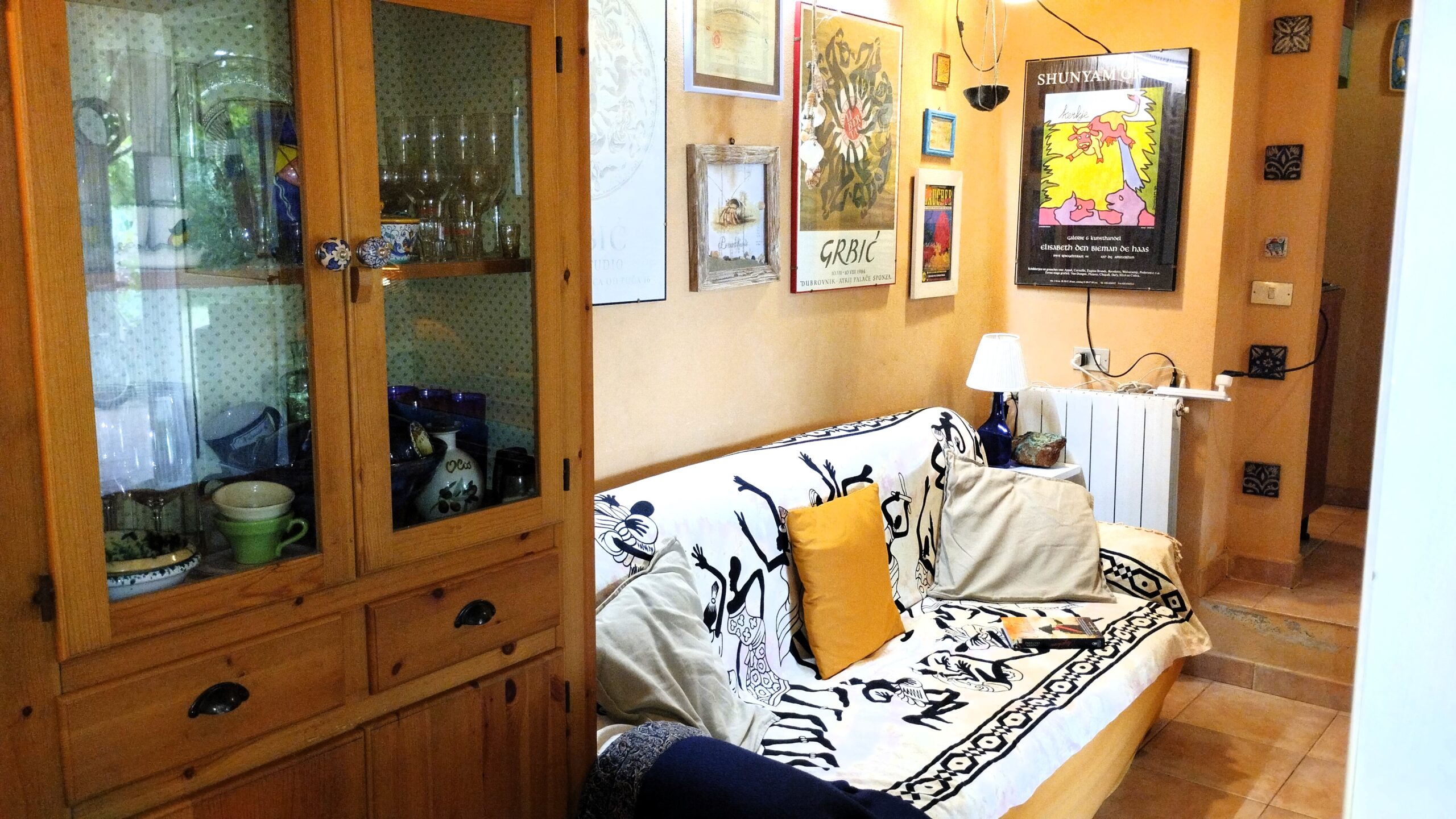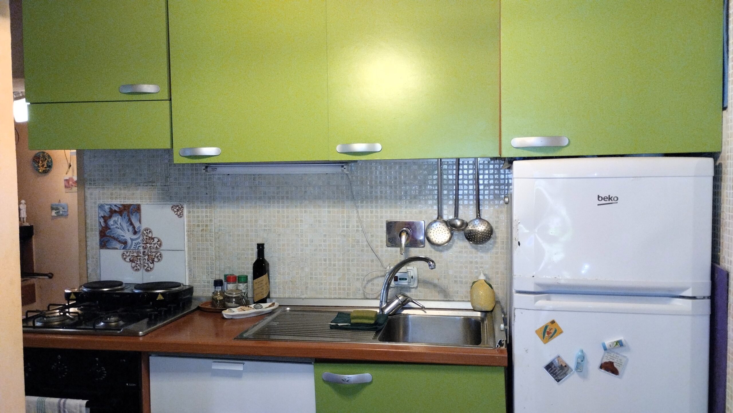 L’appartamento, originariamente facente parte di una villa più grande, ha ingresso indipendente nel grande giardino dotato di barbecue, un loggiato e una veranda attrezzati alla convivialità. Internamente troviamo la zona giorno con tavolo da pranzo interno e divani, bagno con box doccia e lavatrice, cucinotto a gas, camera matrimoniale e cameretta con divano letto singolo più letto estraibile.